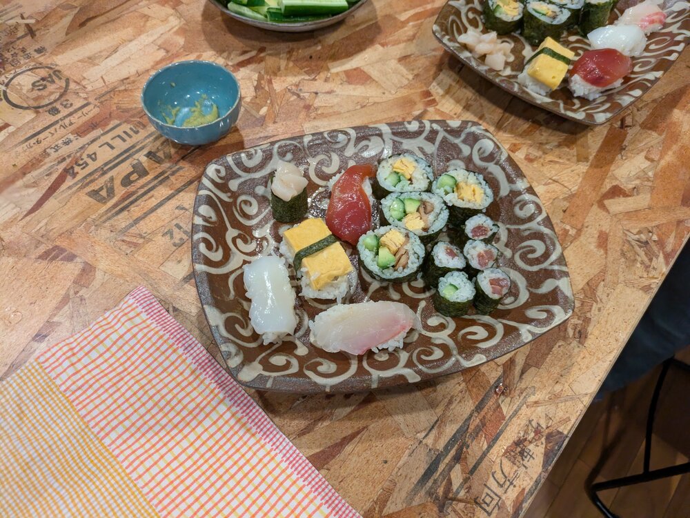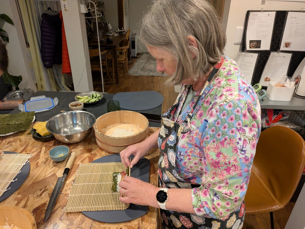 Another consequence of our only being here for three nights, is that we hit the ground running. Megan had found a chef who was offering cooking classes, so we had booked on an evening's course on sushi making. We travelled out into the sticks on the day we arrived to the home of Yuki's to learn how sticky sushi rice really is, how sharp the knives are and what exactly are the ingredients of miso soup. We were quite proud of our sushi making results although they were probably laughable in the greater scheme of things. Under the expert tutelage of Yuki and as a result of making the stuff from scratch, it did taste good though.