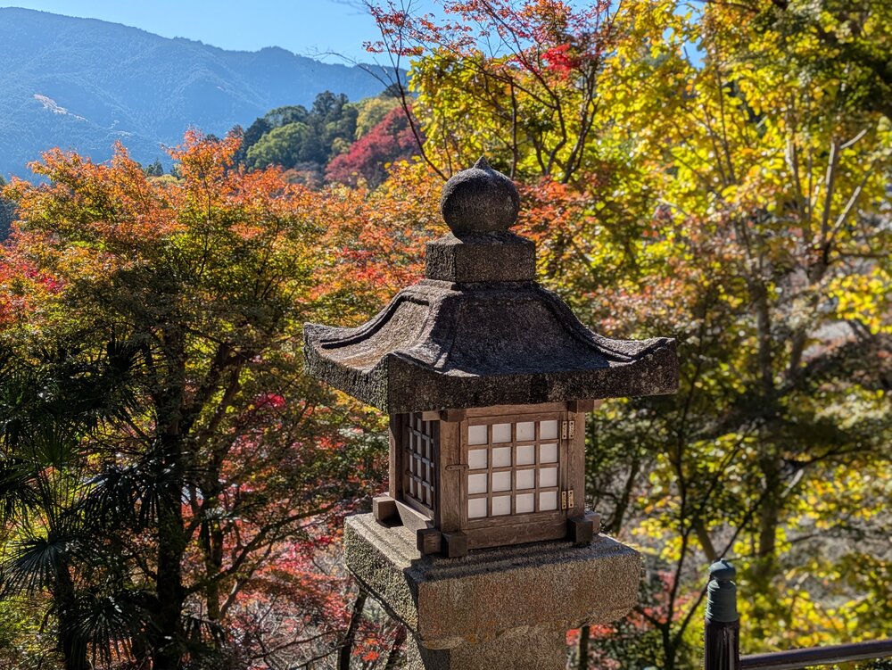Everyone has heard of the Cherry Blossom craze in Japan (locally known as Sakura). Of course, that happens in the spring. Slightly less well-known, but equally regarded by the Japanese is the autumn tree colouring. The fall leaf season is probably slightly longer than that of the blossom, so rather easier to observe for us travellers who don't have the luxury of when to go. In the north we found the colours were on the wane, but now we are in the south, they seem to be in full swing. Whilst this makes everything look very pretty, it does mean there is a lot of Japanese tourism going on too - which is fine. We did get to see some very pretty leaf displays at the temples we visited although, since the mountainsides are covered in cyprus trees, much of it was still green.