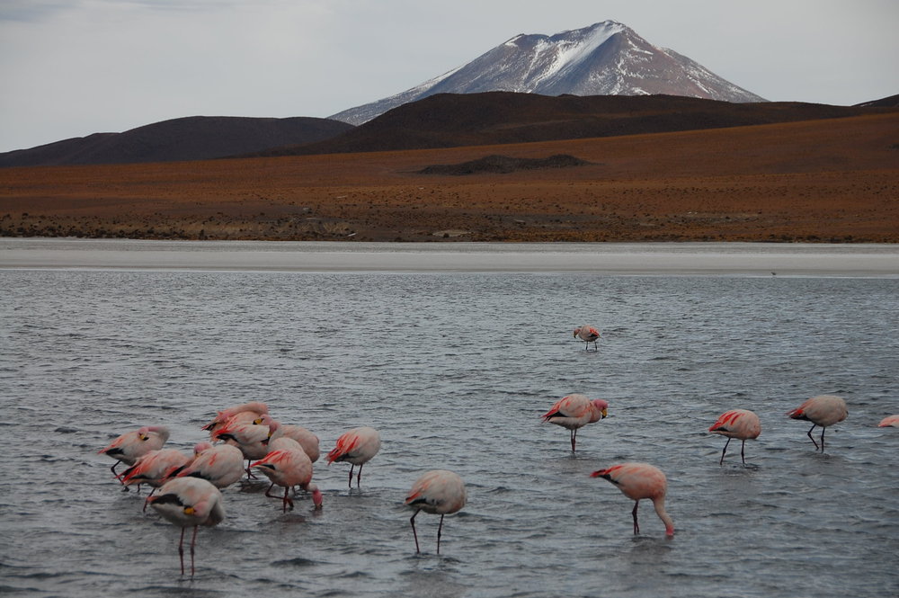 The hotel we had stayed in had felt in the middle of nowhere, but driving through the park made us feel truly remote. The landscape is deeply inhospitable and at the same time incredibly beautiful. It seems to have barely changed since the Incas passed through in search of new lands. We passed the so called Salvador Dali desert and the Geiser Sol de Mañana thermal vents spraying out superheated steam that froze in the frigid atmosphere before it hit the ground. At one point, the landscape became reminiscent of Rotorua in New Zealand with its bubbling mud pools. The difference here was that there were no safety fences to stop you falling in!