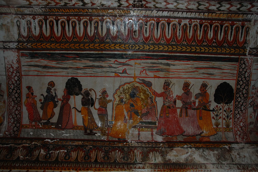 Similarly, the Raj Mahal or Royal Palace is pretty impressive. It is more dilapidated than the Jahangir Mahal, but is notable for its stunning paintings showing hunting scenes and depictions of Vishnu in assorted guises.
